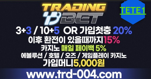 트레이딩벳 전종목 3+3 / 10+5 or 첫충20% 매충 10% 가입꽁머니 만원!