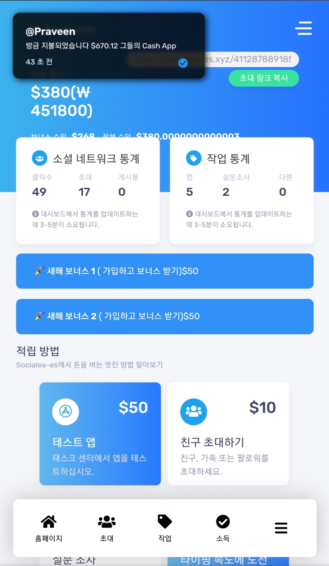 앱다운50달러 설문조사10달러 친구초대10달러