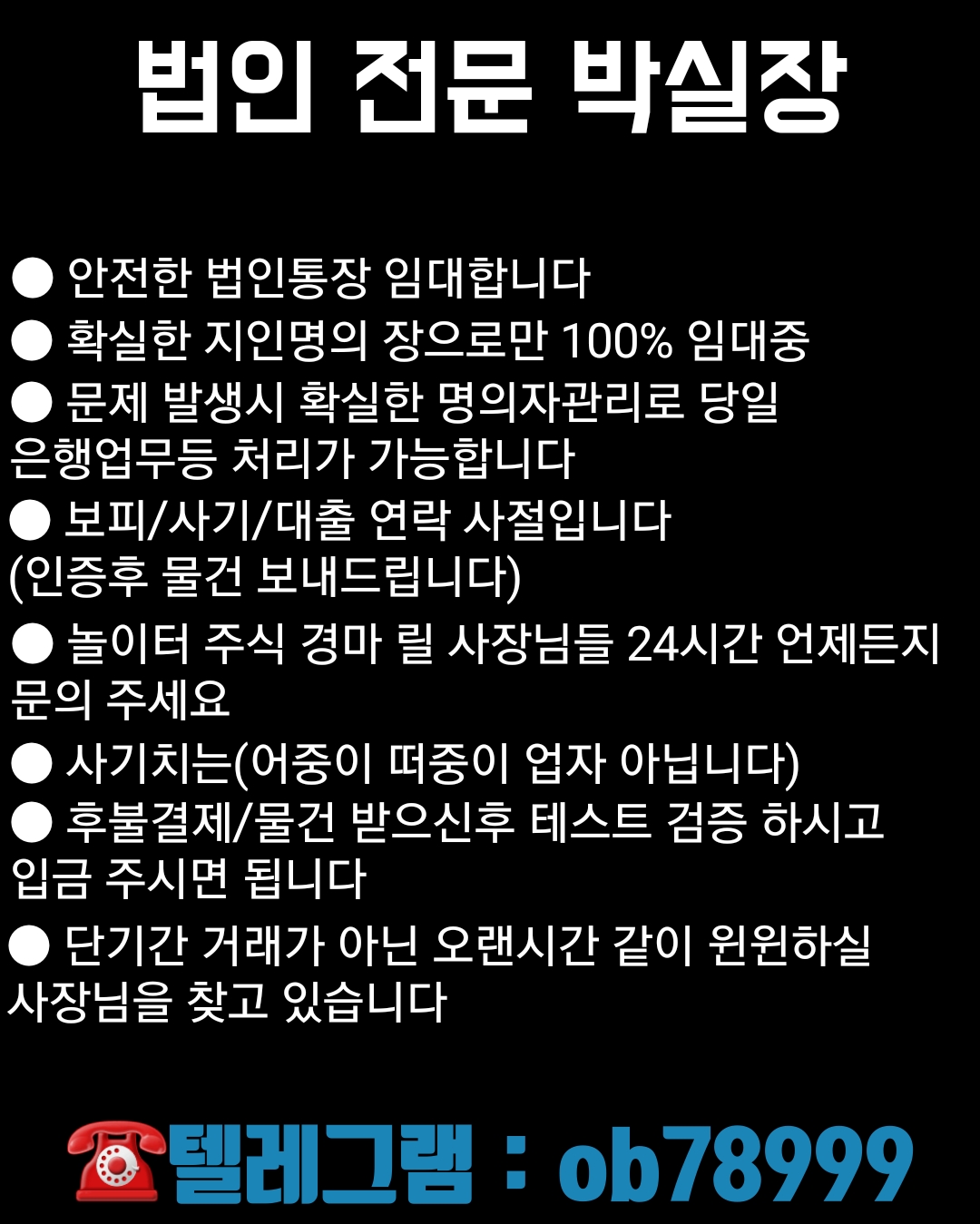 안녕하세요 법인전문 박실장입니다 안전한 법인통/장 임대합니다