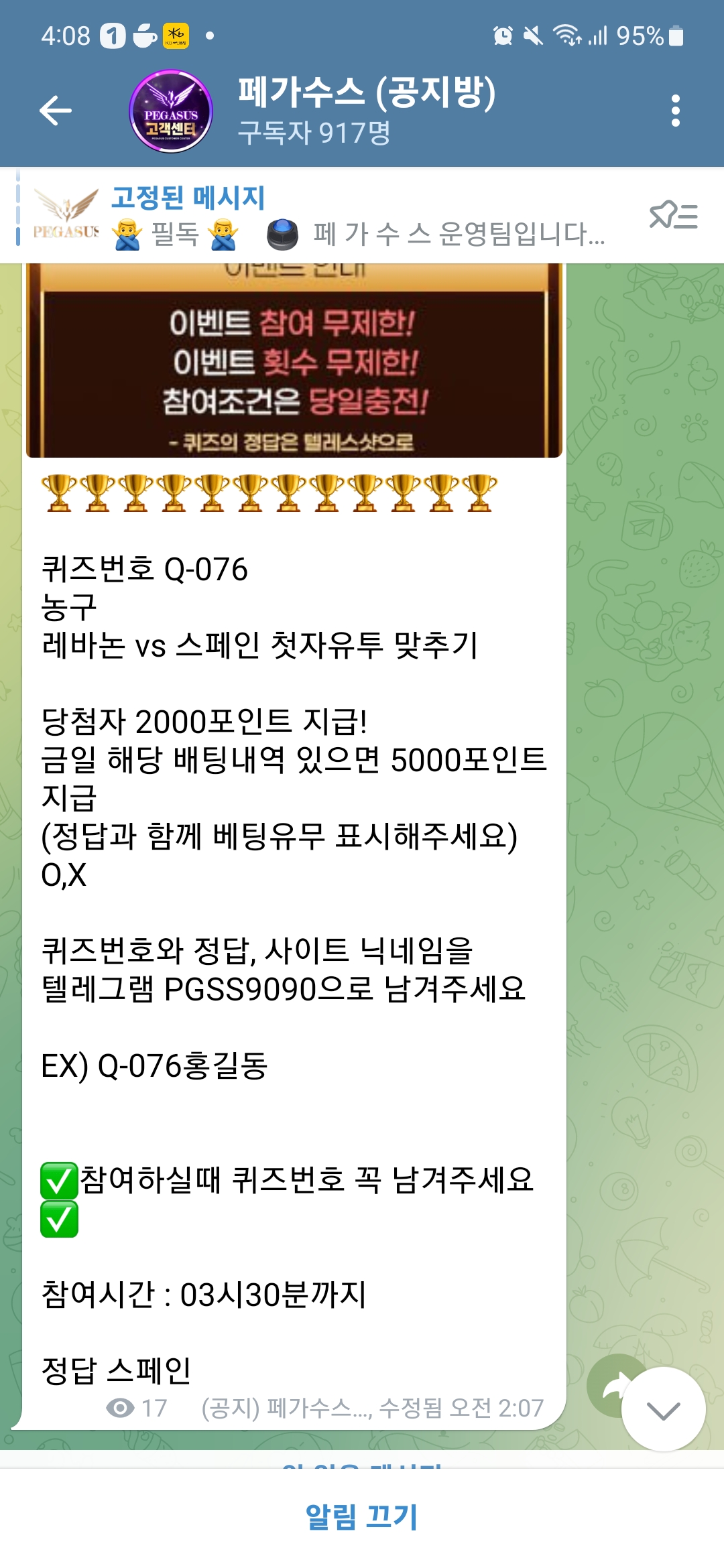 페가수스 퀴즈이벤트