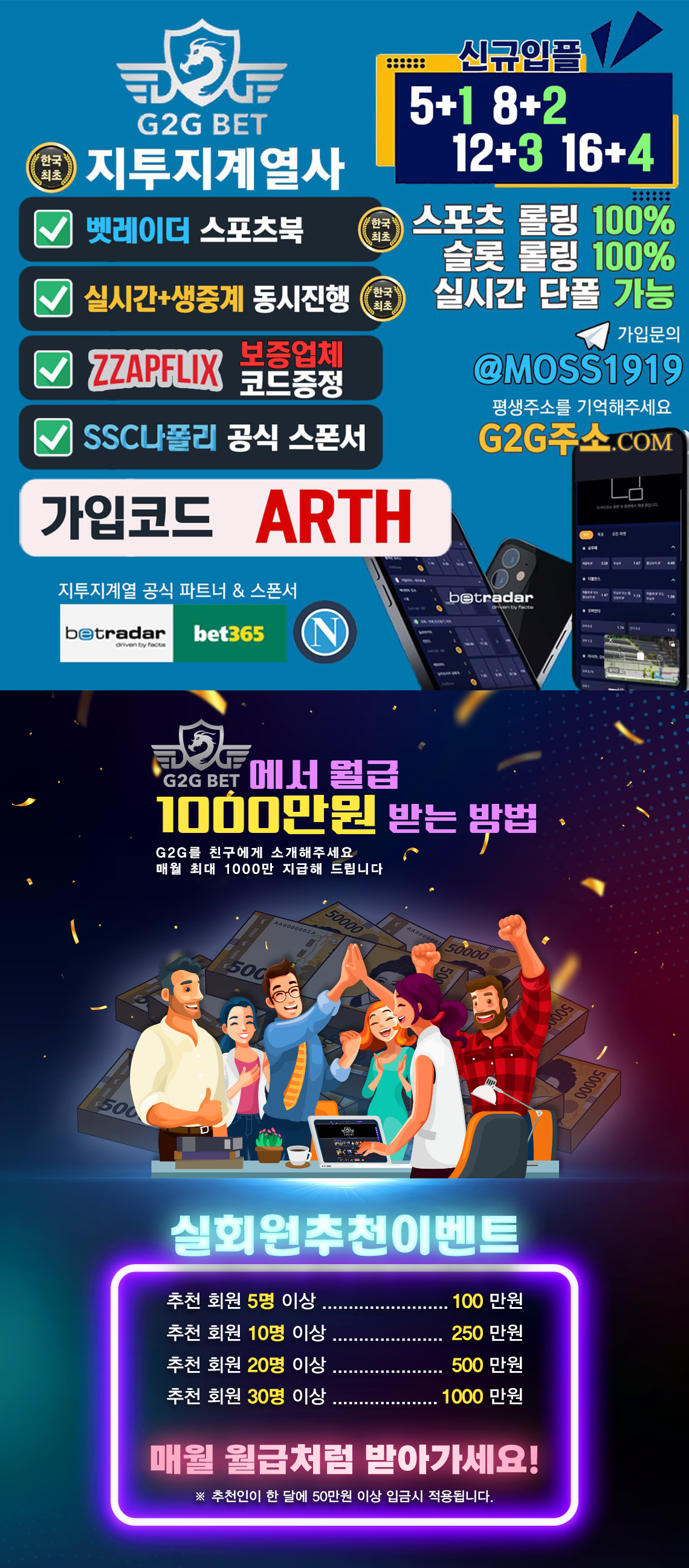 [G2G계열] 20년 무사고 나폴리 후원사 월 1천만원 지인추천 이벤트중!! 본사코드 발급