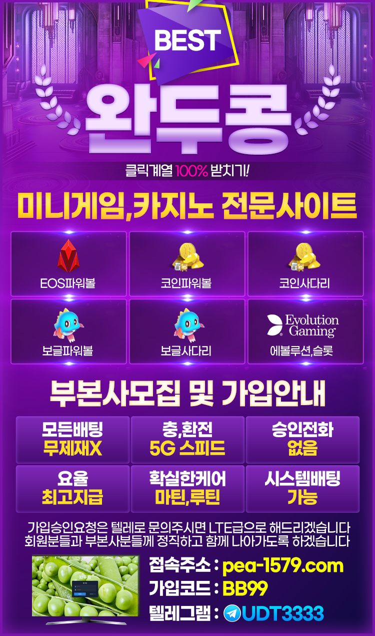 완두콩카지노 클릭계열100%받치기안전 빠른충환 최고요율 파트너모집 미겜 에볼 슬롯
