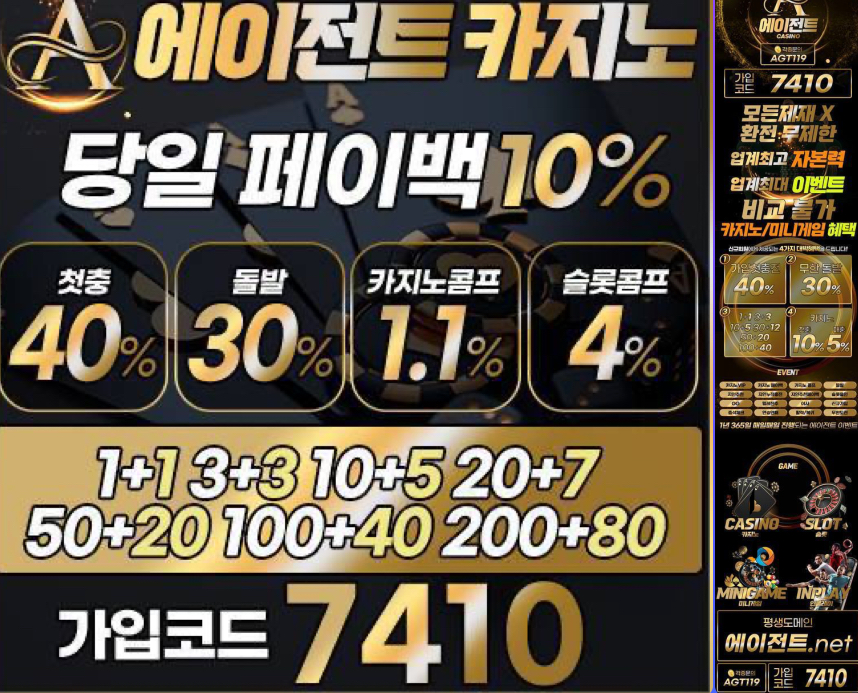 <에이전트 카지노> 신규첫충40% 무한돌발30% 당일 페이백10%