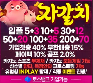 믿고쓰는 보증업체 자갈치 ,신규첫충 40% 스포츠 매충 15%, 기간제 이벤트 추가! 한번씩 확인 부탁드립니다.