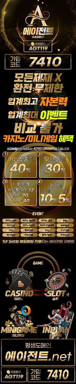 <에이전트 카지노> 신규첫충40% 무한돌발30% 당일 페이백10%