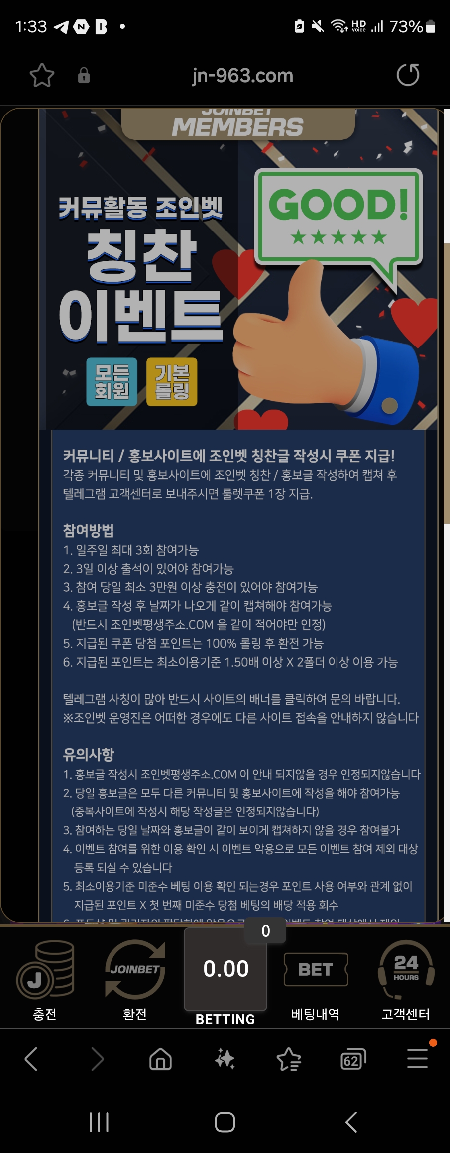 안녕하세요 저는 조인벳평생주소.com 사이트를 우연히 알게되어서 처음에 포인트를 받고 이용하게 되었습니다 여기는 출석체크 룰렛도 맨날 주시더라구요
