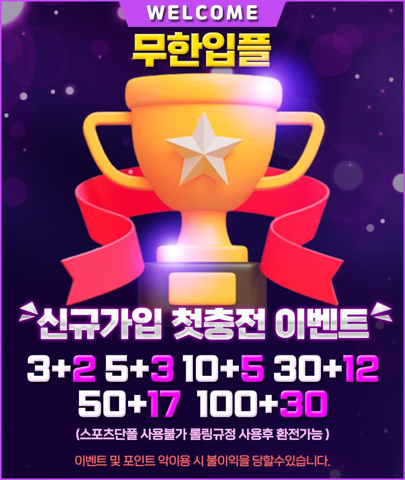 무사고 웰컴 사이트 입플 3+2 5+3 10+5 30+12 50+17 100+30 롤링 100 다양한 이벤트