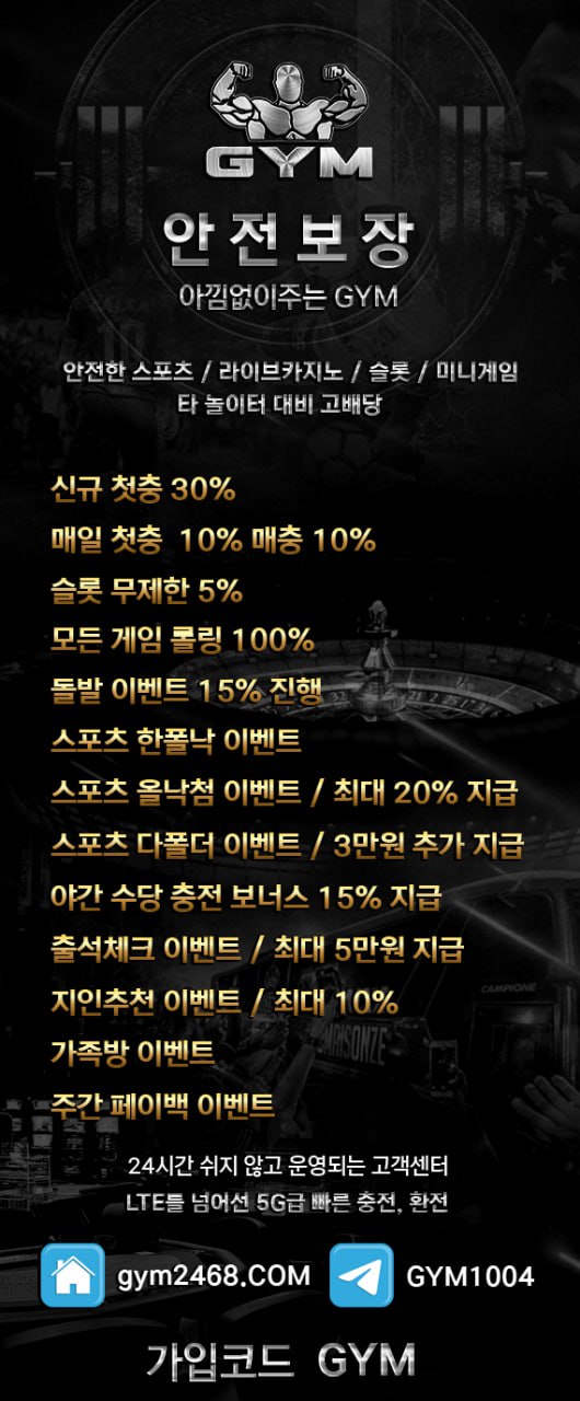 GYM️아낌없이 주는 안전한 스포츠 / 라이브카지노 / 슬롯 / 미니게임