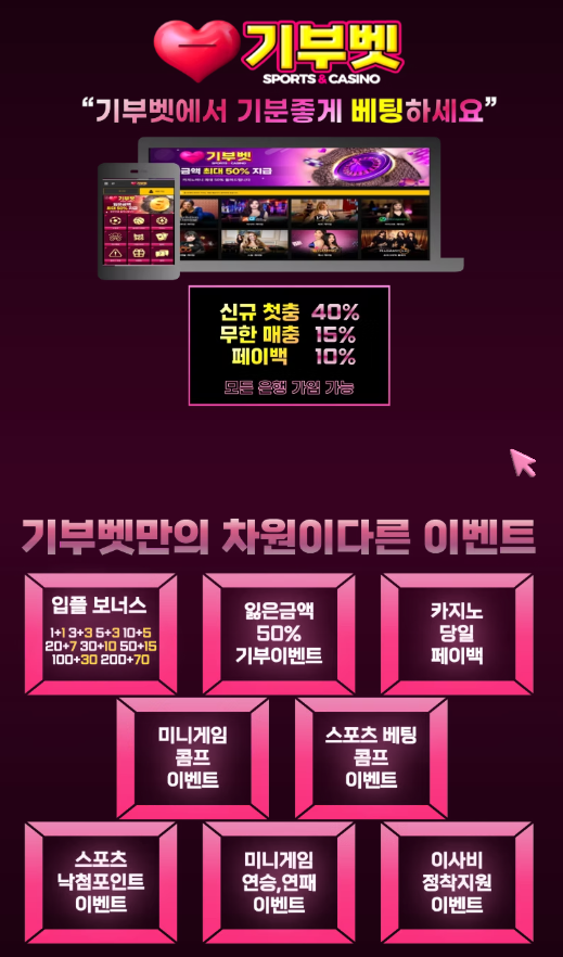 기부벳 신규 입플 회원 모집 1+1 부터 시작 잃으신 금액의 50% 돌려드립니다