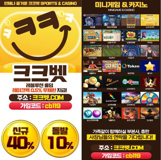 (크크벳)신규첫충 40% 다양한이벤트 각종 포너스 포인트 무사고 환전