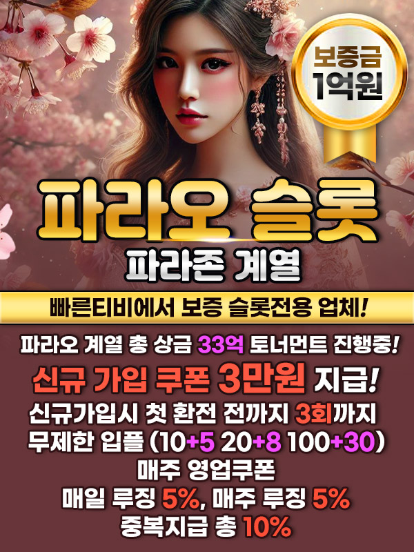 슬롯머신계의 공식 에이전시 [파슬롯] 가입감사 3만 쿠폰 / 매일 첫20% 매10%/ 돌발 하루 3회/입플 3회 지급/ 빠른 …