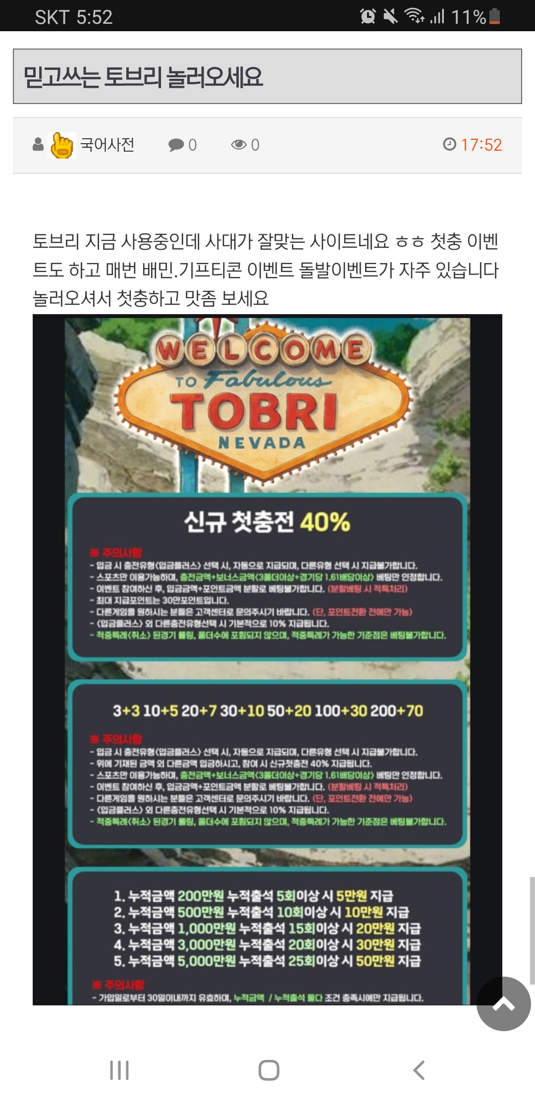 이벤트도 좋은데 심지어 충환전도 잘나온다 ?? 이건 안쓰면 바보죠 놀러들 오세요 사이트 고센도 친절하니 오래쓰기 딱입니다 이벤트 매일 돌발로 다양하게 열리니 오셔서 맛 한번 보세요 ~  TOBRI-01.COM code TOBRI