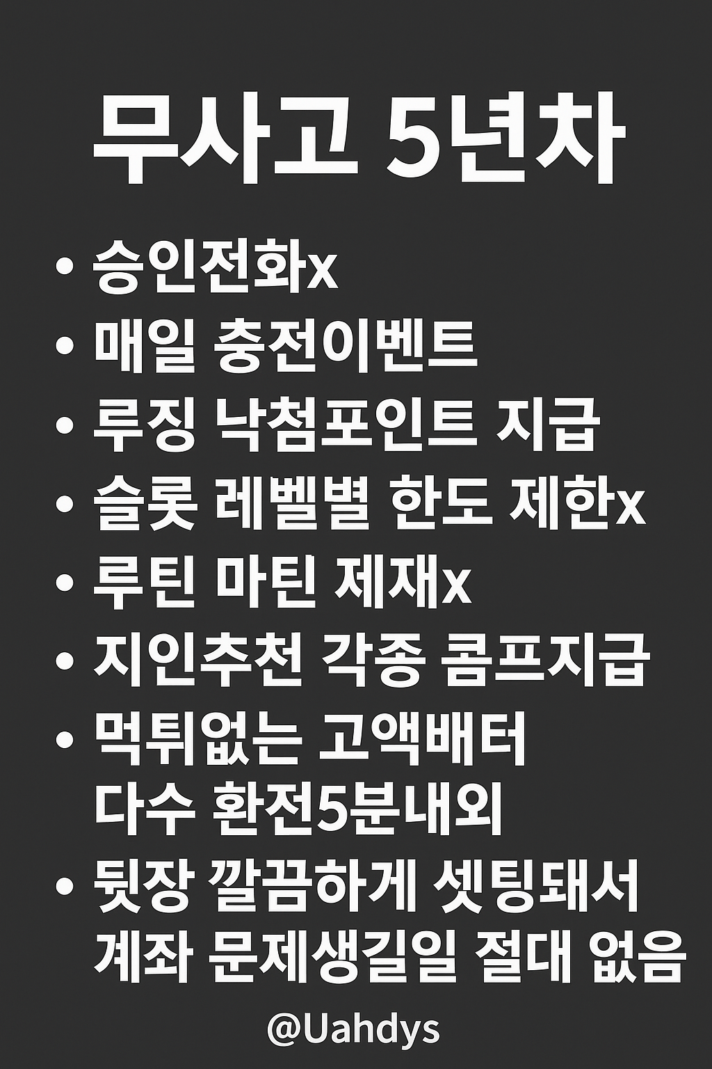 무사고 5년차 승인전화x 매일 충전이벤트 다양한 이벤트 스포츠 바카라 슬롯 미니게임 다양한 게임