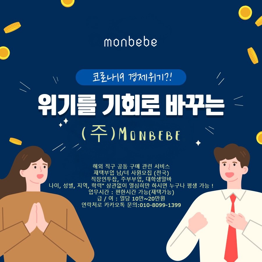 코로나 확산 방지를 위한 (주)몬베베 해외 전자상 물류 업체에서 자택근무 아르바이트 하실분 5 인 모집 중입니다