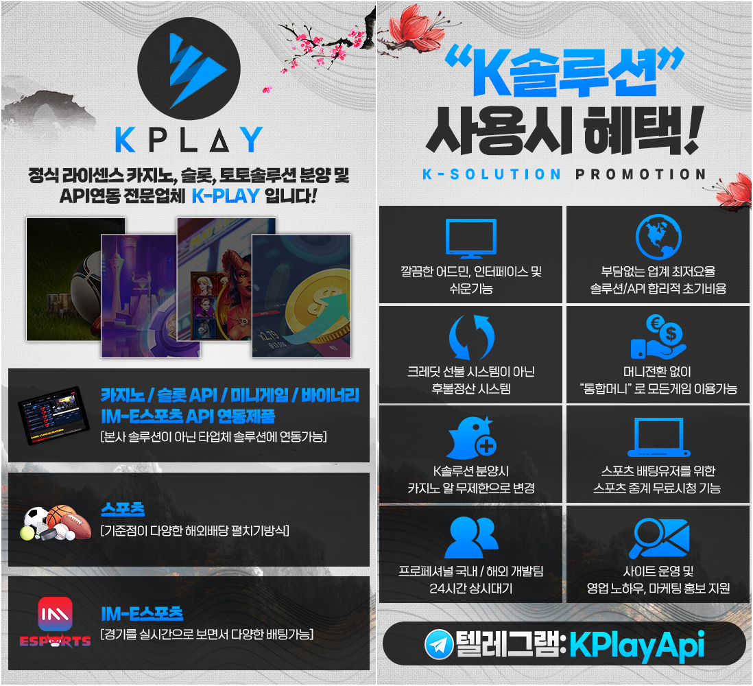 K-play 알본사, 토토솔루션, API연동 업체 입니다. (에볼, 카지노, 슬롯, 바이너리, IM-E스포츠 )