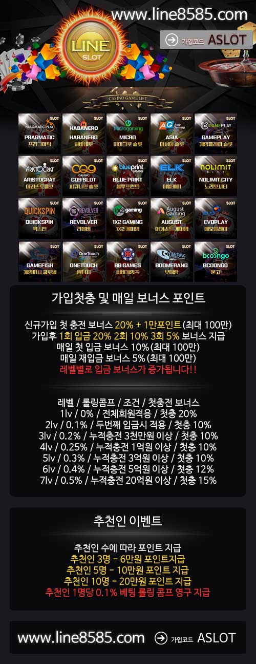 추천인 1명당 0.1% 베팅 롤링 콤프 영구 지급