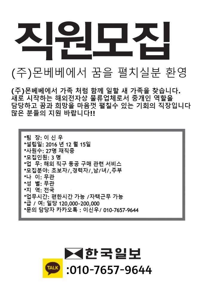 *업  무: 해외 직구 동공 구매 관련 서비스