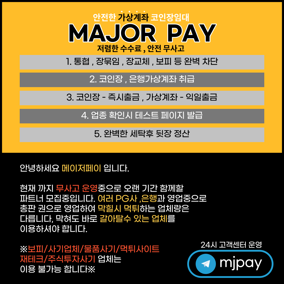 ✅[가상계,좌임대] 메이저페이 최저수수료[ 텔레 : mjpay ]