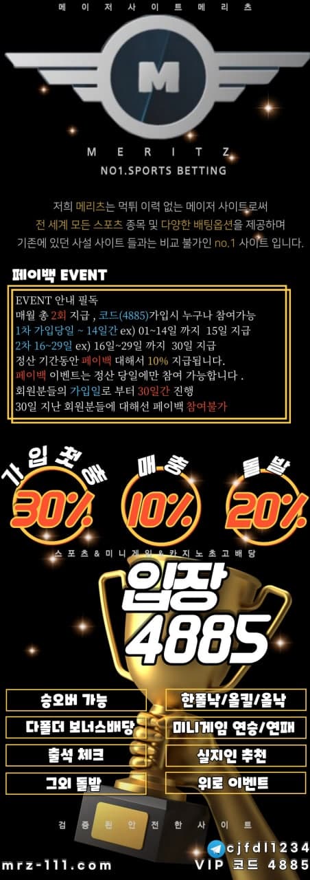 업계최고*메리츠*첫충 30%!! 승오버가능&미니게임&카지노&스포츠 최고배당!!