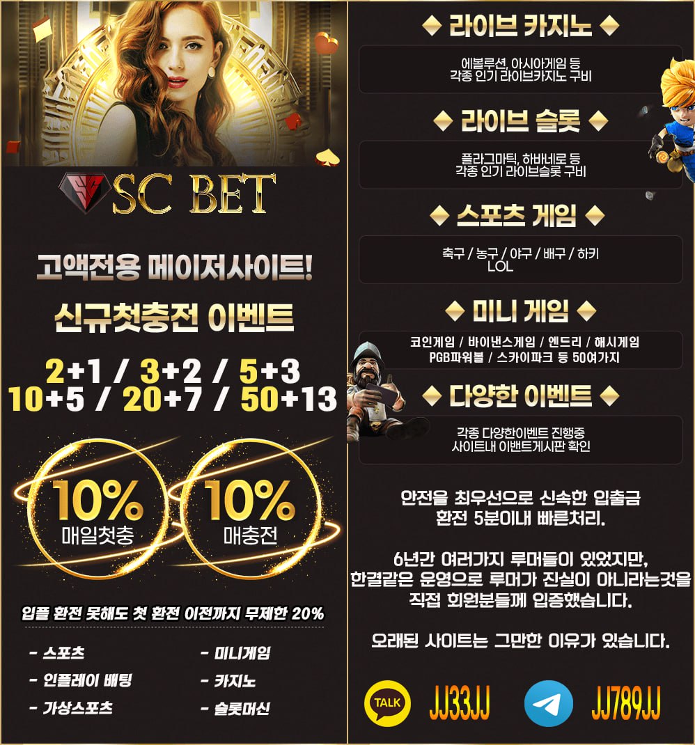 6년간 안정적으로 운영되고 있으니 느린 충환전,먹튀 걱정 마시고 놀러오세요