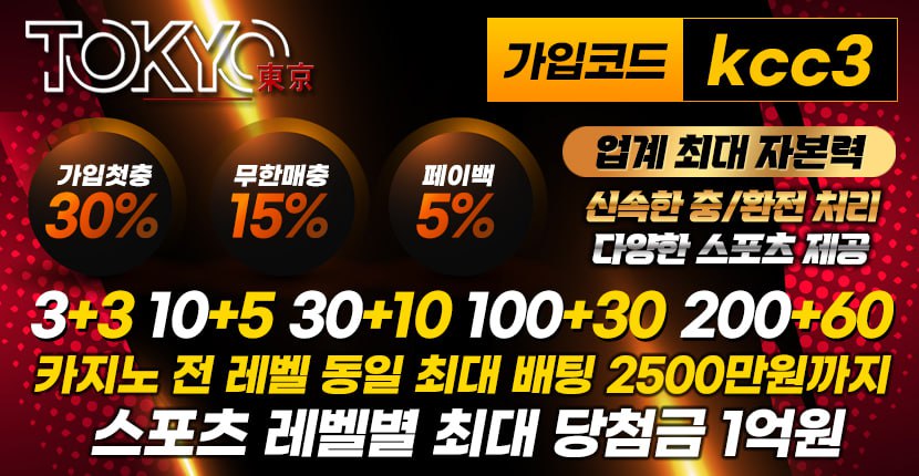 도쿄벳/보증업체/첫환전까지 무제한 30% / 3+3 10+5 30+10 100+30 200+60 /고액맛집/요율O/제재NO/업…