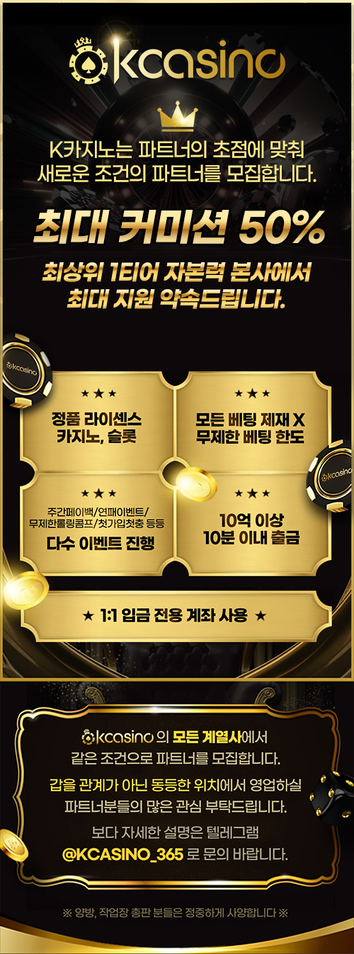 K카지노 롤링+죽장 파트너 모집 업계 최고 조건