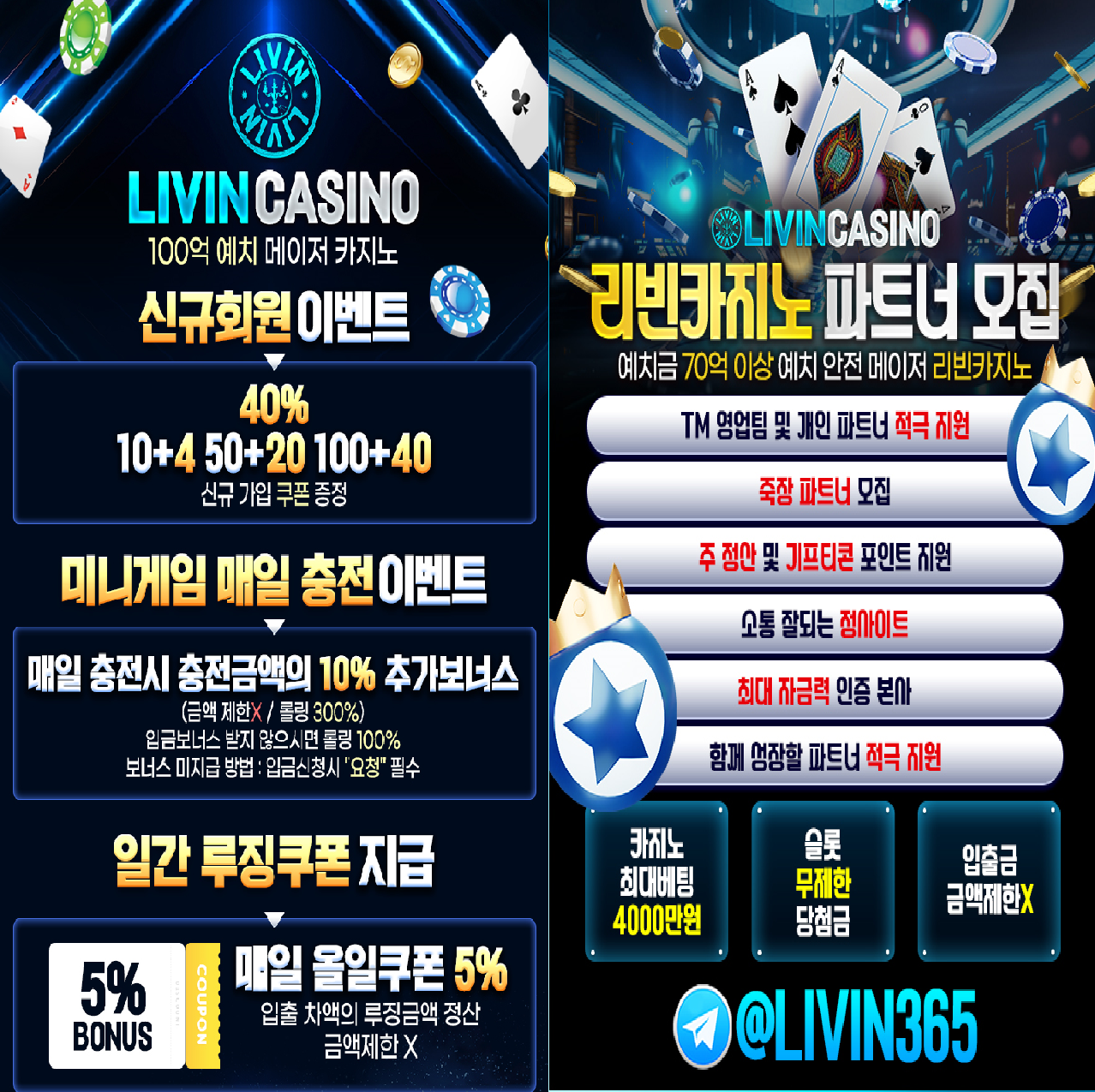 안전과 신뢰를 최우선을 하는 리빈카지노 입니다. 많은 관심 부탁드리겠습니다.