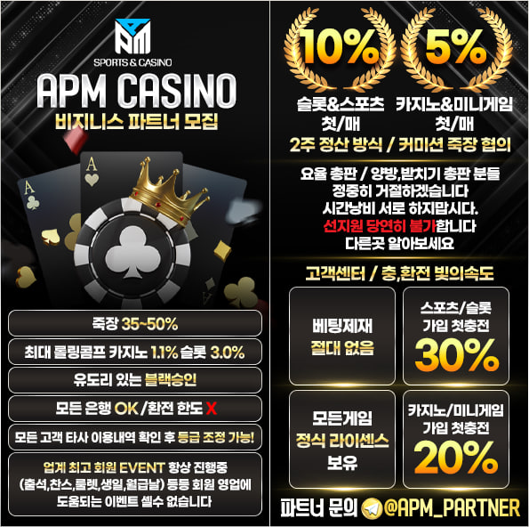 APM 카지노 에서 개인총판 파트너 사장님들 최고우대 모집합니다