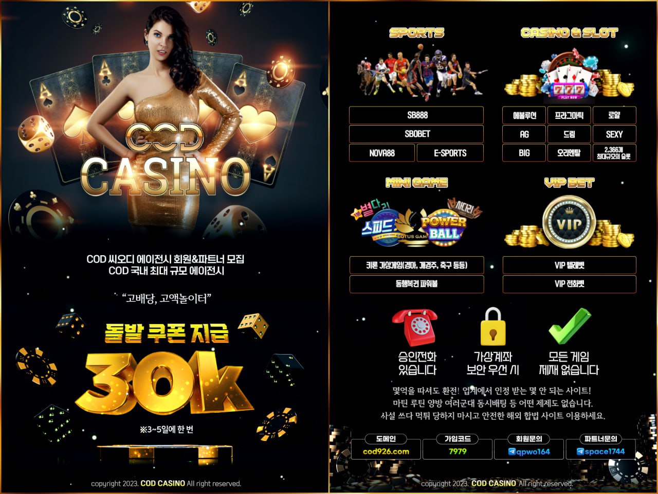 COD 씨오디 에이전시 회원&파트너 모집중"COD" 국내 최대규모 에이전시 / 돌발 3만쿠폰 지급