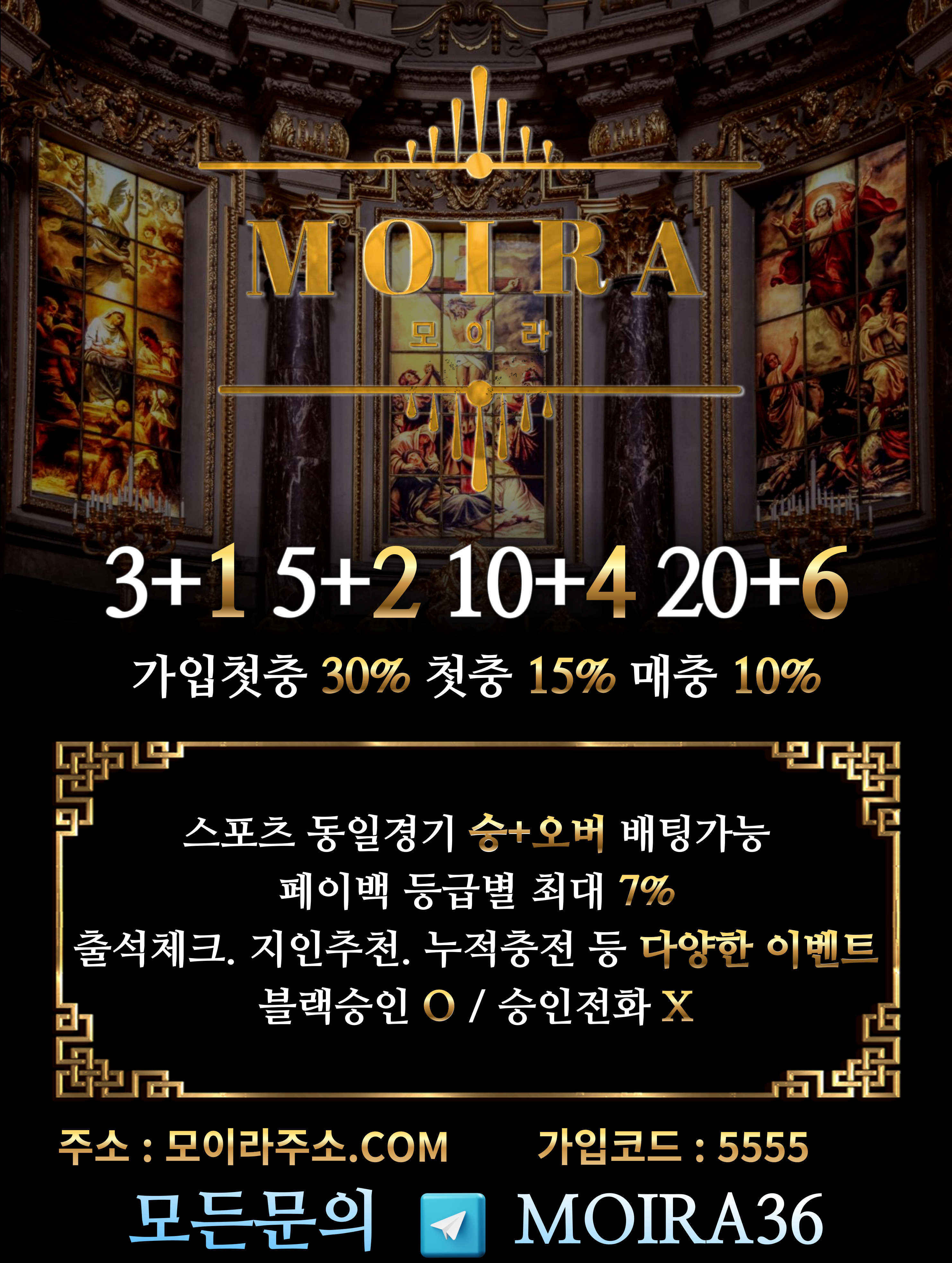 [ 모이라 ] 입플 / 가입첫30%, 첫15 매10 돌발20 / 스포츠 / 미니게임 / 바카라 / 슬롯