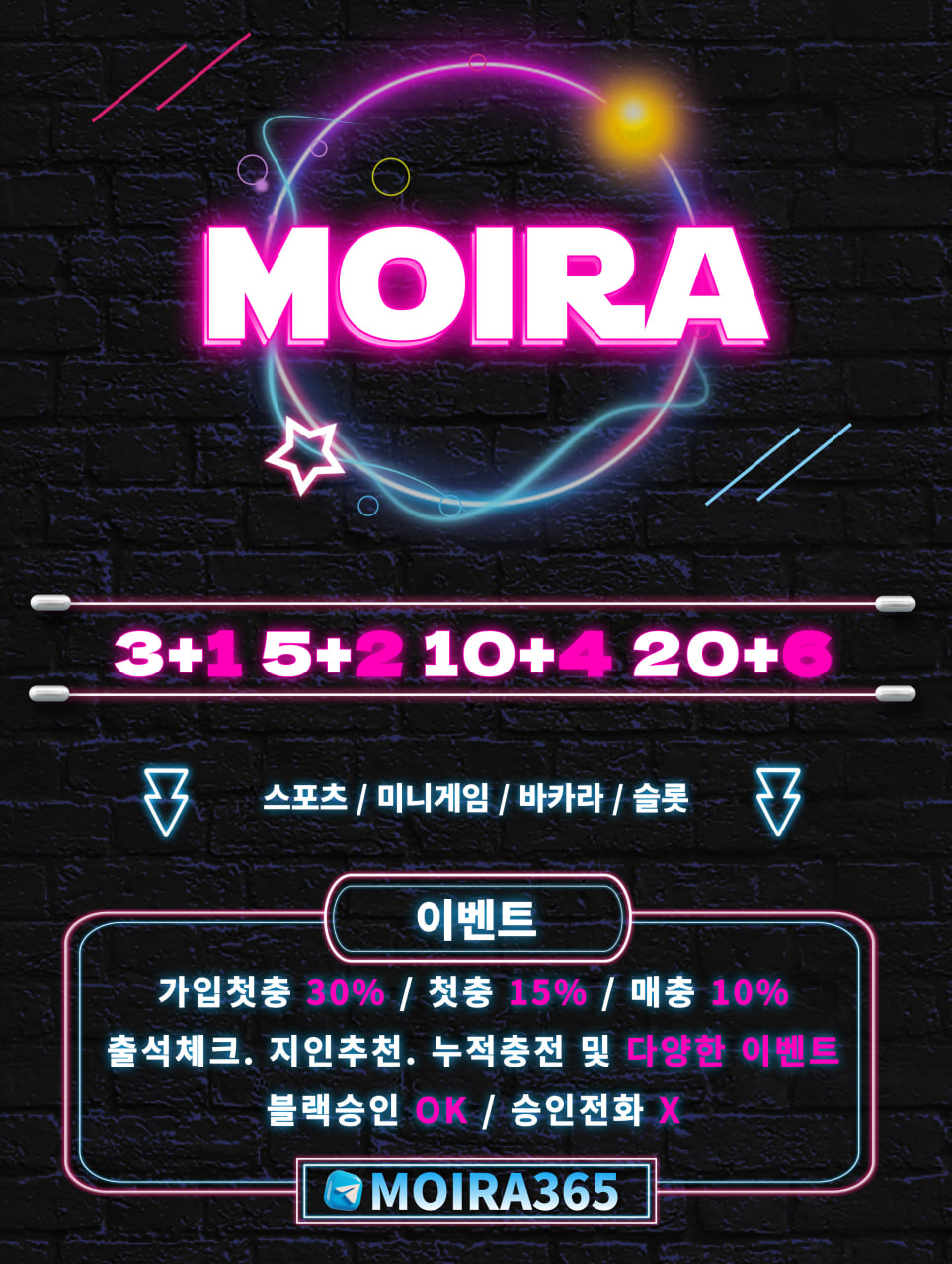 [ 모이라 ] 입플 / 스포츠 / 미니게임 / 바카라 / 슬롯 / 가입첫30%, 첫15 매10 돌발 20