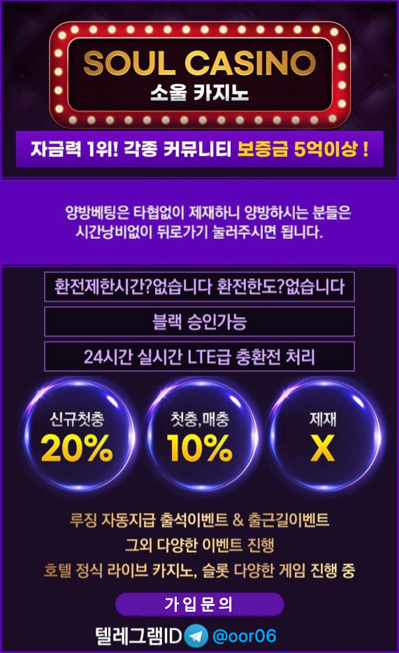 [회원모집] 소울카지노 첫 20 롤300