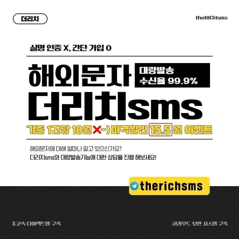해외문자 대량문자 더리치SMS 15.5원 단가 이벤트
