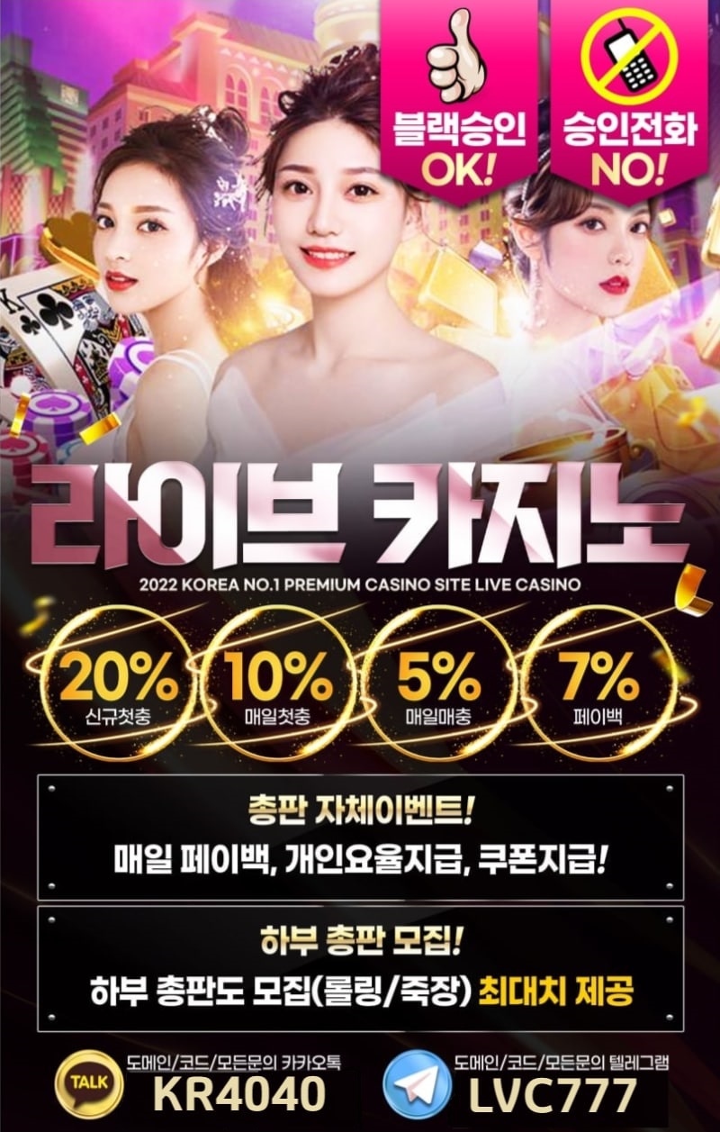 라이브 카지노 신규 20% 첫 10%매 5% 루징 페이벡 개인요율