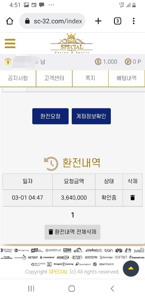 스페셜 먹튀확정 입니다. 이용중지하세요.
