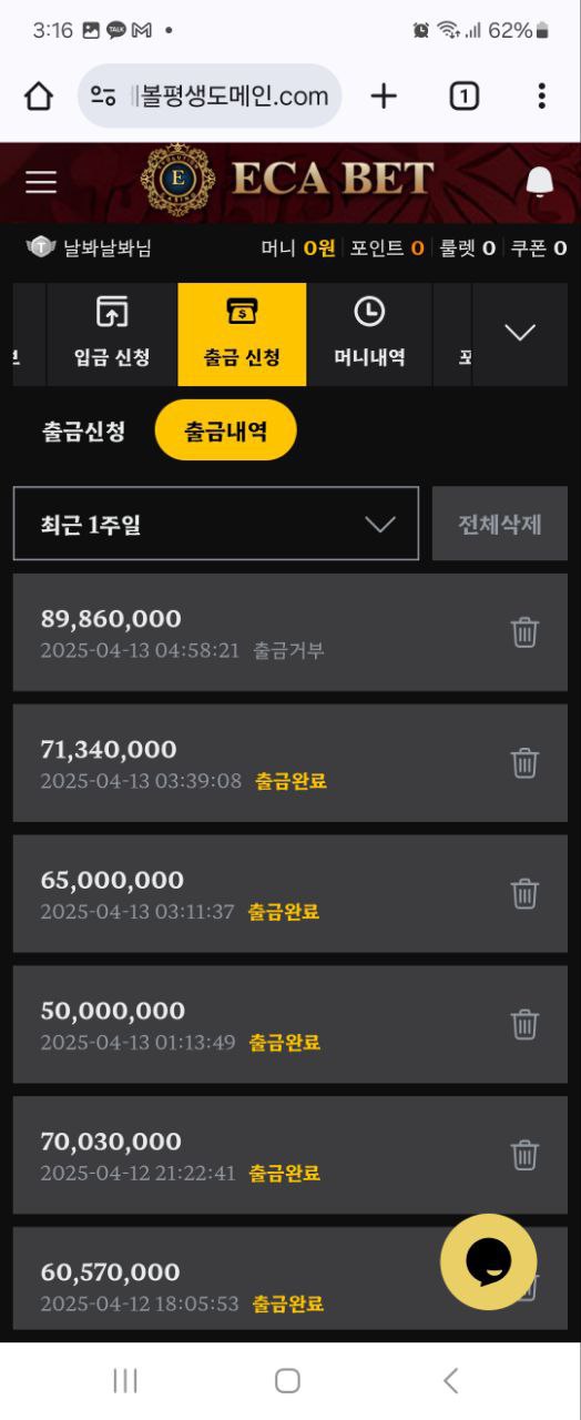 에카벳 / ECA BET (구)에볼루션카지노 9000만원 먹튀 입출내역,대화내용 인증가능