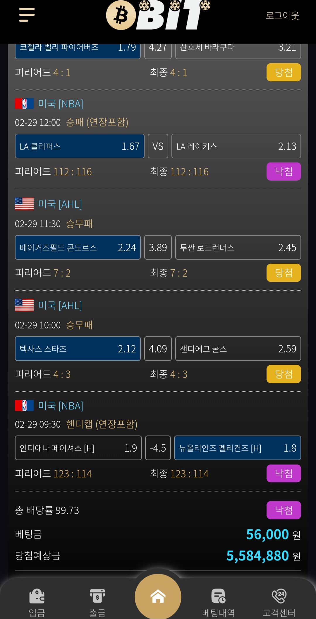 - 스포츠 당첨내역 이끌림좋네요!!! 24.02.29