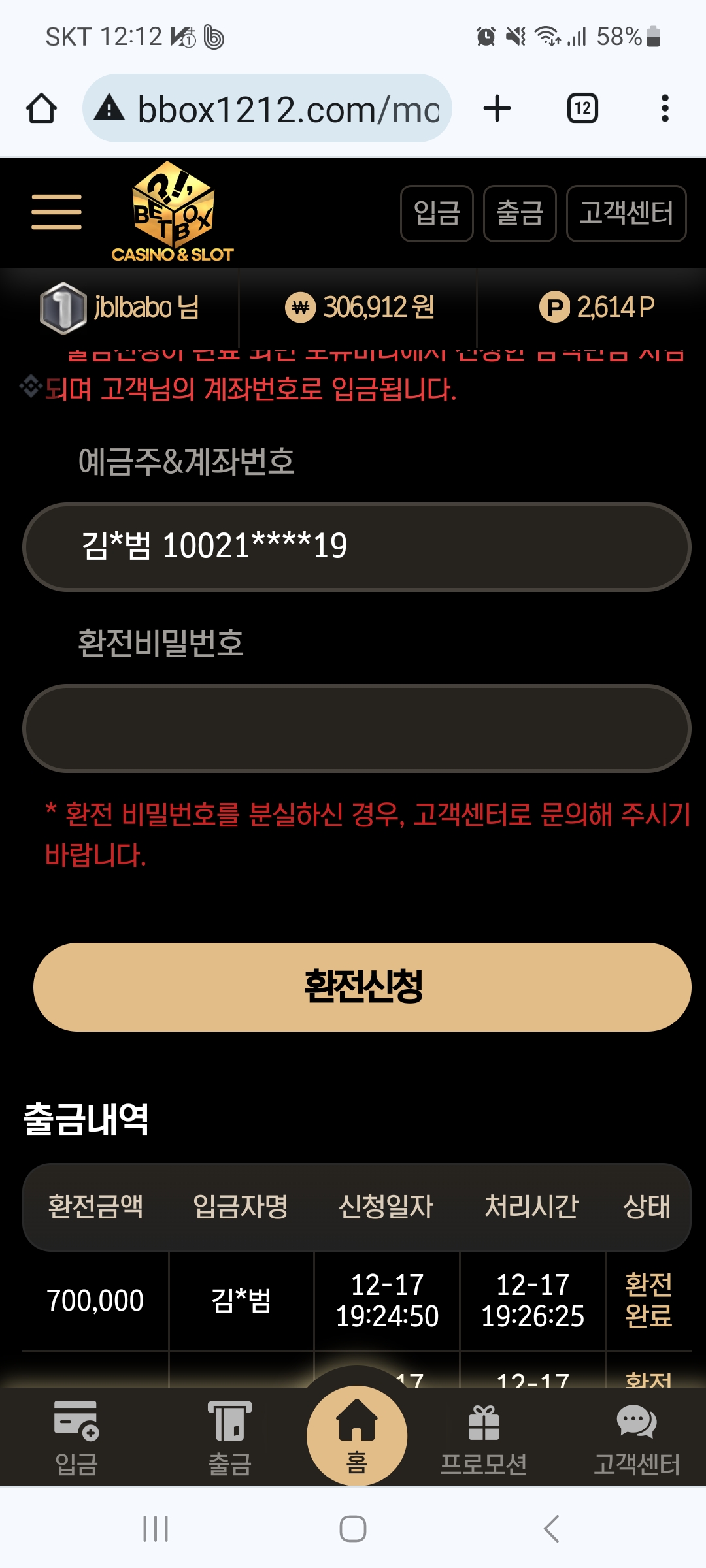 벳박스 후기3 페이지 정보 작성자 jblbabo 전체게시물 전체게시물 조회1,392 읽음 0개의 댓글 본문 어제도 벳박스에서 사투끝에 출금했네요 ㅅㅅ출금 정말 빠르고 슬롯도 잘주네여 추천 0 목록 이전글비트후기!! 23.12.18 다음글벳박스 후기2 23.12.17 마케팅 센터가 오픈되었습니다.본사 부본사 총판 여러분들이 이용하시며 서로 winwin 할 수 있는 홍보공간 입니다.글쓰기 권한 문의는 아래 텔레그램으로 연락주시기 바랍니다.글쓰기 권한 문의 시간은 오전10시~오후10시 까지이며 일요일은 휴무입니다.