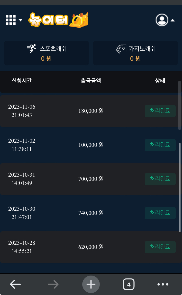 안녕하세요 한 두달전부터 놀이터벳 이용하기 시작했는데 이용후기 남기려합니다 우선 사이트 솔루션 깔끔하고 렉도 없어서 이용하기 좋은거같구요 스포츠 걸때 기준점이랑 옵션이 다양하고 걸 경기도 다른사이트들이랑은 다르게 많아서 배팅하기 좋다고 느꼈습니다 이벤트 관련해서도 첫충 입플 매충 생일이벤트 등등 엄청 많아서 같이 챙길수 있어서 좋구요 충전도 하기ㅜ간편하고 속도도 빠르고 환전도 물론 빠르게 되는게 좋습니다 고객센터 분들도 친절하게 대응해주셔서 좋구요 이용하실 분들은 제가 아래에 주소랑 코드 남길테니ㅜ한번 이용해보세요 사진은 제 환전내역입니다 건승하세요