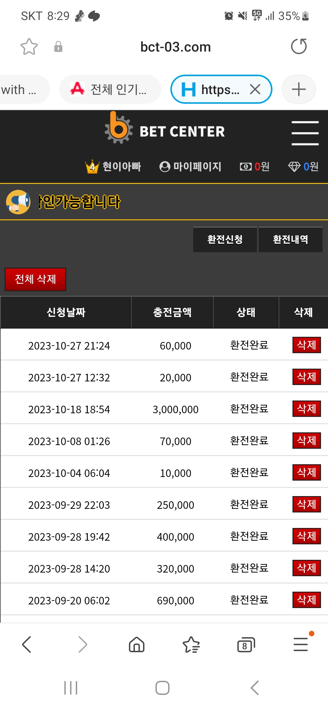 소액부터 큰 금액까지 환전 빠르구요 2시간 간격으로 환전가능합니다 다양한 이벤트 많으니 꼭 이용해보세요 강력추천합니다