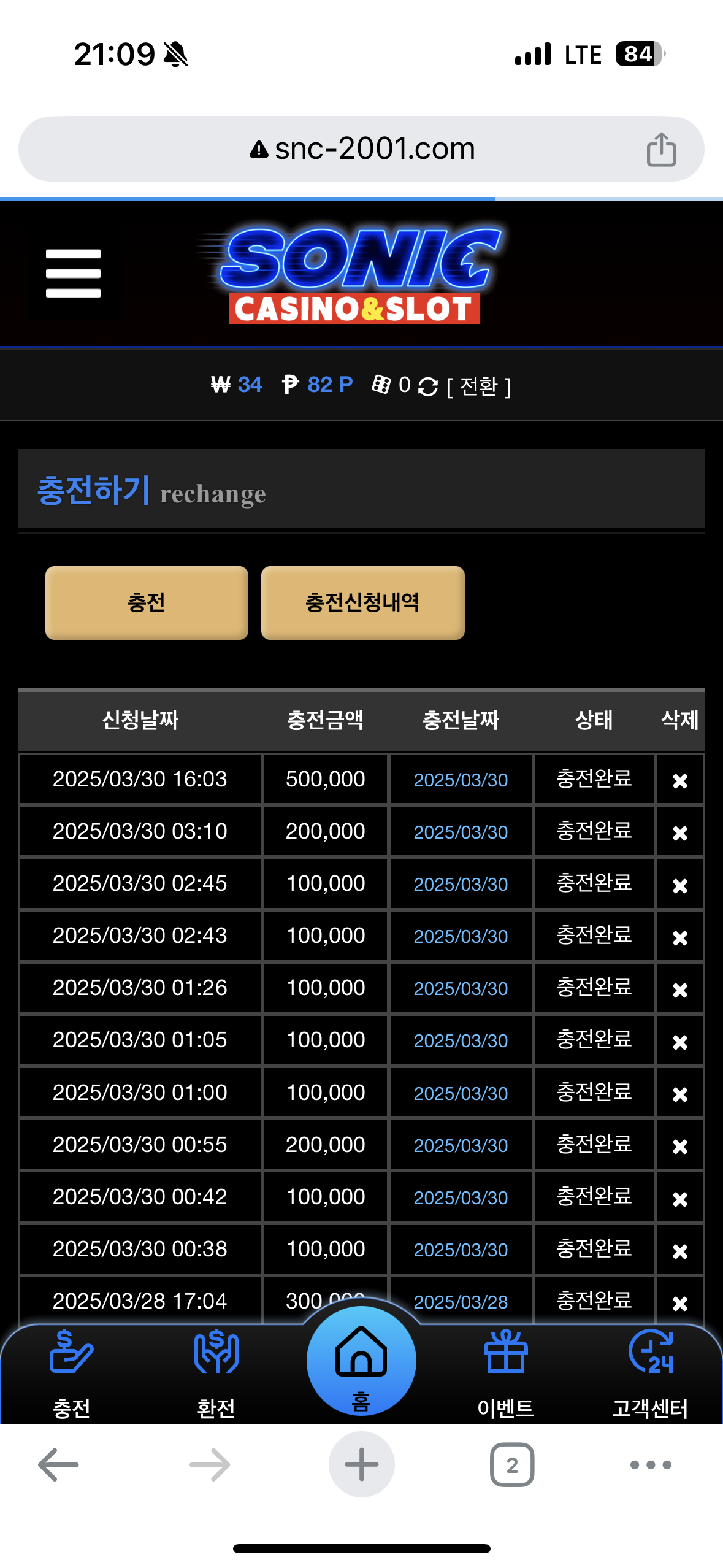 소닉은 진짜 자본금이 많은 것 같아요 환전이 이렇게 빠를 수있나 싶을 정도로 환전신청하고 새로고침 하면 환전완료고 충전도 새로고침하면 바로 됩니당 ㅋㅋㅋ이벤트도 빵빵해서 좋아요
