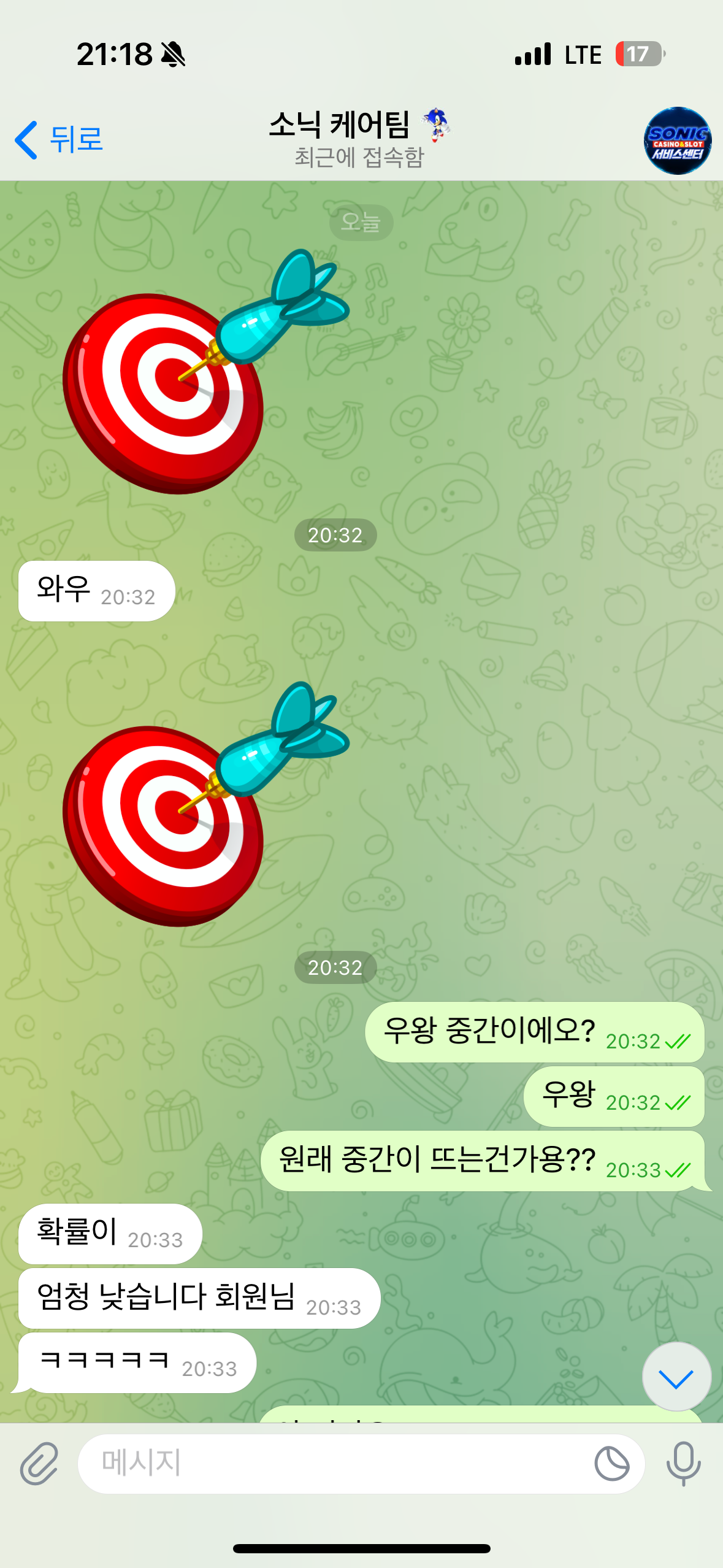 제가 정말 애용하는 소닉카지노에 서비스센터가 있는데요 고객센터와 일반 공식채널과 다른 이벤트를 제공하며 답변도 빠르고 새로운 이벤트가 있어서 재미나게 사이트를 이용하는데있어서 너무 새로워서 좋았어요! 너무 기분 좋아서 다트 이벤트 당첨된거 캡쳐 해놨던거에요 ㅋㅋㅋㅋ ㅎ다른 사이트들은 이벤트 룰렛 이런거 확률 조작있던데 여긴 깔끔한 것 같고 다른 후기들을 보니 많이 잃으면 케어도 해주고 생일에도 챙겨주는 것 같더라구용 저는 아직 그런 포인트는 안 받아봤지만 여러 이벤트 참여해본 결과 너무 정성스렂고 친절한 태도가 마음에 들었어용 다들 소닉 이용해보시구 서비스센터에 보살핌도 받아보세요 추천 ㅎ