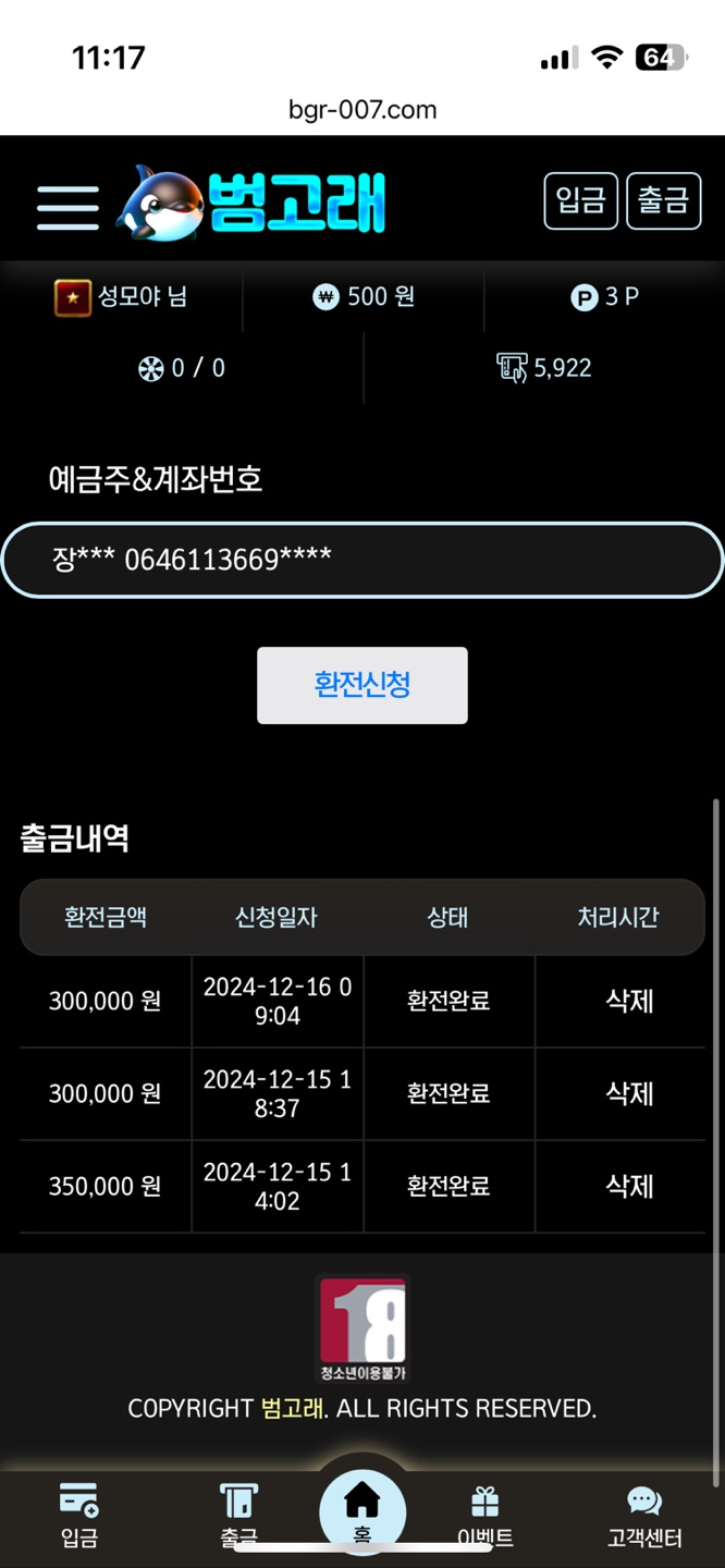 범고래 충환전도 빠르고 직원분들도 친절하셔서