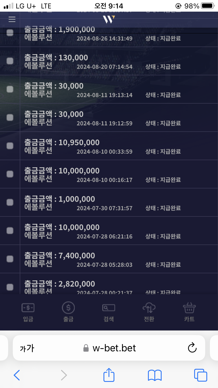 정말 안 쓰시면 손해일 정도로 이벤트가 많습니다 이렇게 이벤트 많은 곳 처음 봤습니다 저는 젤 중요하게 생각하는 게 일단 환전이 젤 중요하죠 제가 하는 금액 보시면 아시겠지만 먹튀? 없습니다 저런 고액들도 다 환전해줍니다 그리고 이상한 말로 출금 안 해주는 거? 일절 없습니다 다른 곳보다 차라리 더블유벳 사용해서 이득 보세요 배당도 좋습니다 그리고 매일매일 15프로 돌발이벤트 합니다 안 할 때 첫 충전 포인트 10프로에 그리고 신규 첫충 이벤트 미쳤습니다 꼭 여기 사용해보세요