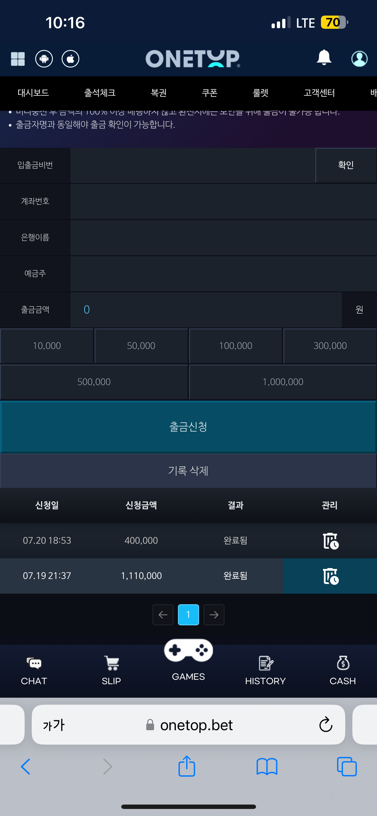 7월달에 전화와서 이용 하다가 첫충 받고 먹튀 때문에 불안해서 사용을 안 할려고 했습니다 근데 환전도 계속 잘 나오고 이벤트도 좋고 특히 스포츠 인플레이 있는게 너무 좋더라구요 요새는 첫 환전 100콩도 먹튀하는곳이 많은데 처음 부터 믿음을 주니 너무 좋더라구요 이용 많이 하세요