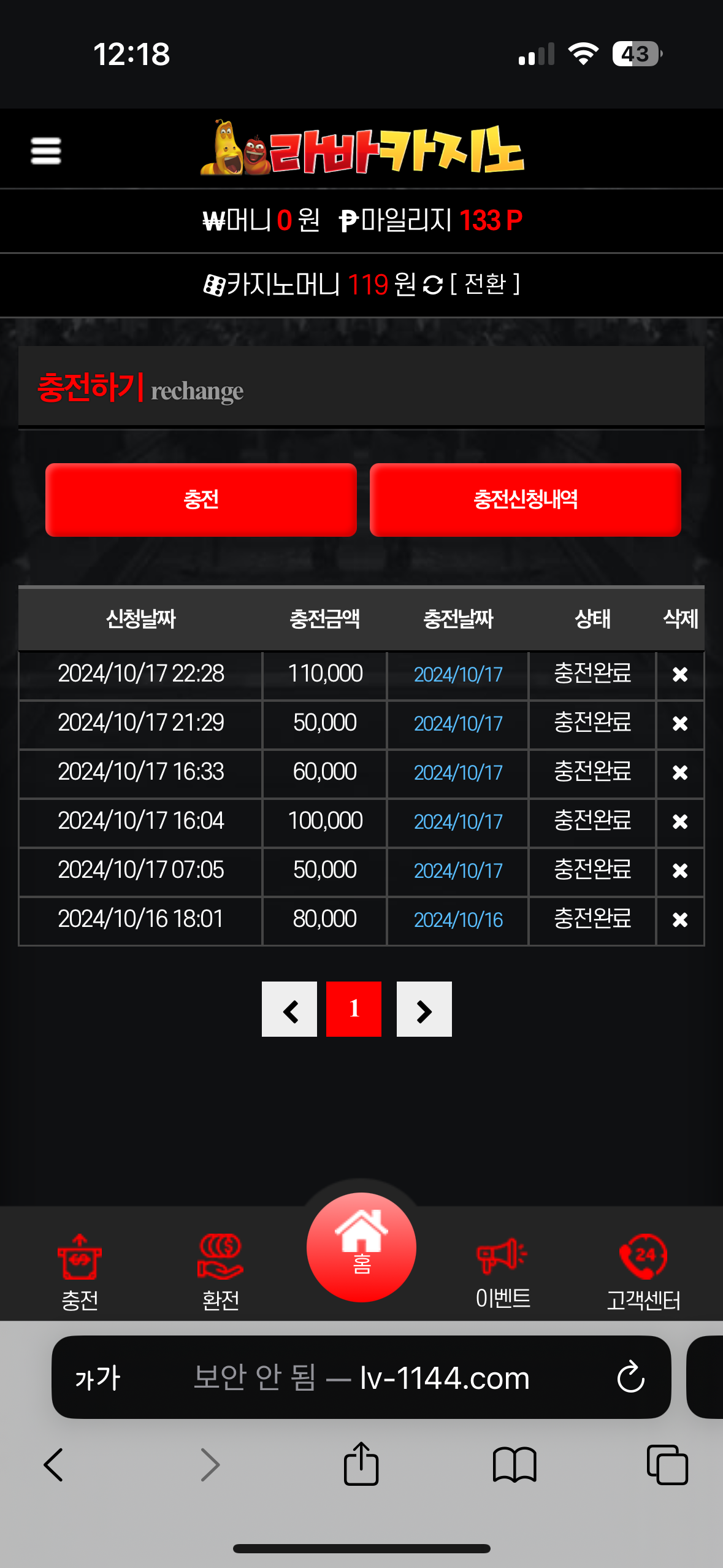 충 환전도 금방되며 고객센터 직원분들도 친절해서 앞으로도 자주 이용할거 같습니다. 라바카지노 화이팅입니다^^