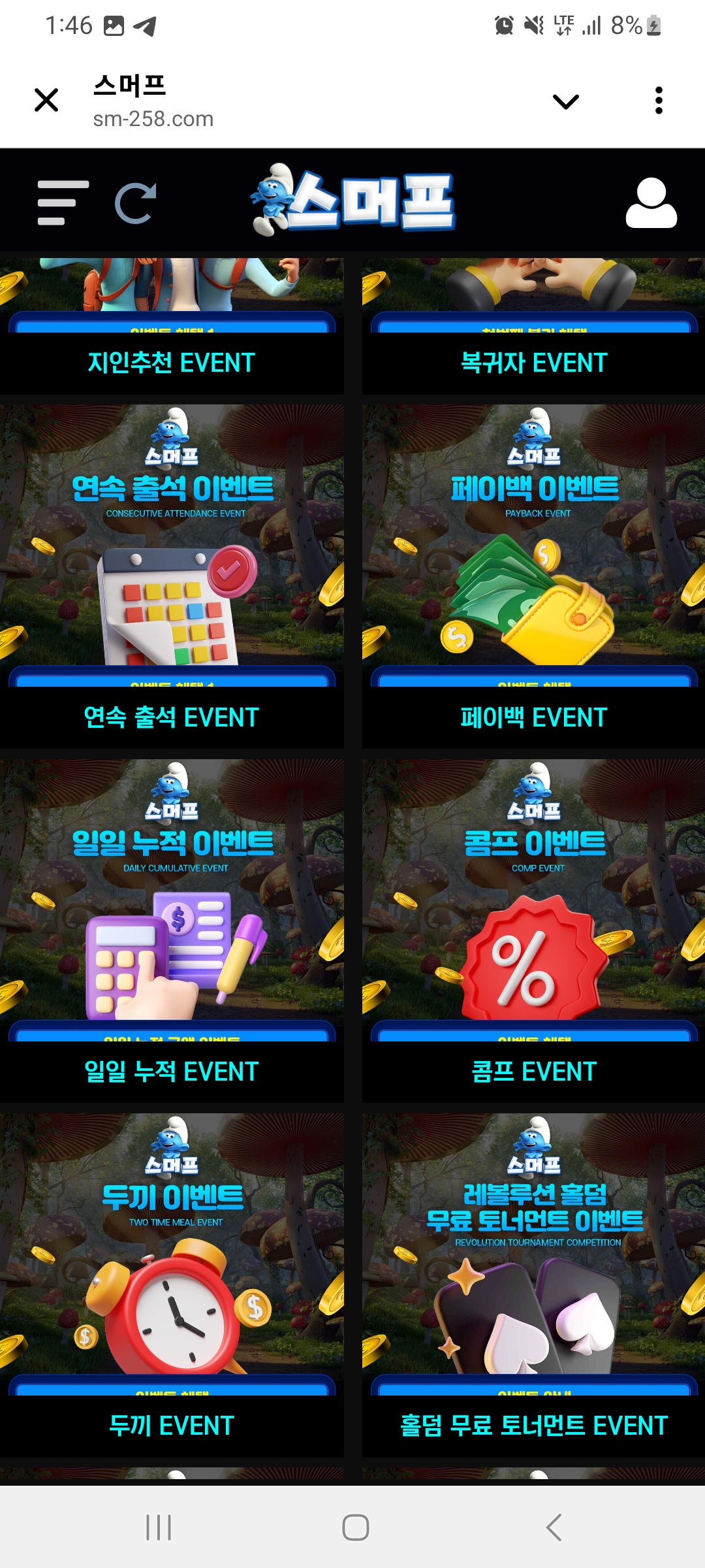 스머프 신규 가입머니 2만원 즉시 지급 환전도 무제한 스포츠 슬롯 미니게임 카지노 롤링만 채우면 다가능합니다 이벤트도 많이잇고 저도 스머프로 이사한지 얼마 안되엇지만 너무좋아요