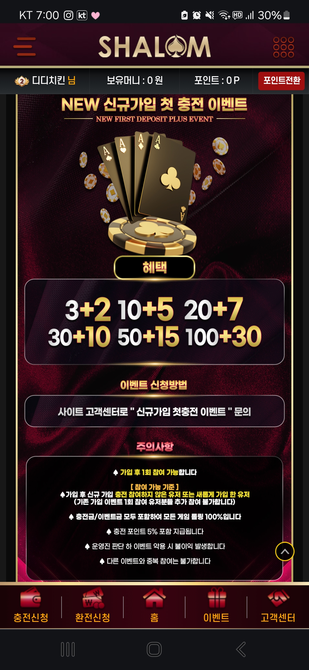 안녕하세요 샬롬 후기 남겨봅니다 샬롬 후기글이 많이 보이던데 이렇게 후기글이 많은데엔 이유가 있겧죠? 오랜시간 써왔는데 환전문제 일절 없었구요 배당도 좋고 특히 좋은게모든 이벤트 포인트가 모든게임가능에 롤링100프로인점 너무 좋은거같아요 신규입플도 포함입니다 신규입플 사진 참조하시고 놀러오셔오 강추드립니다