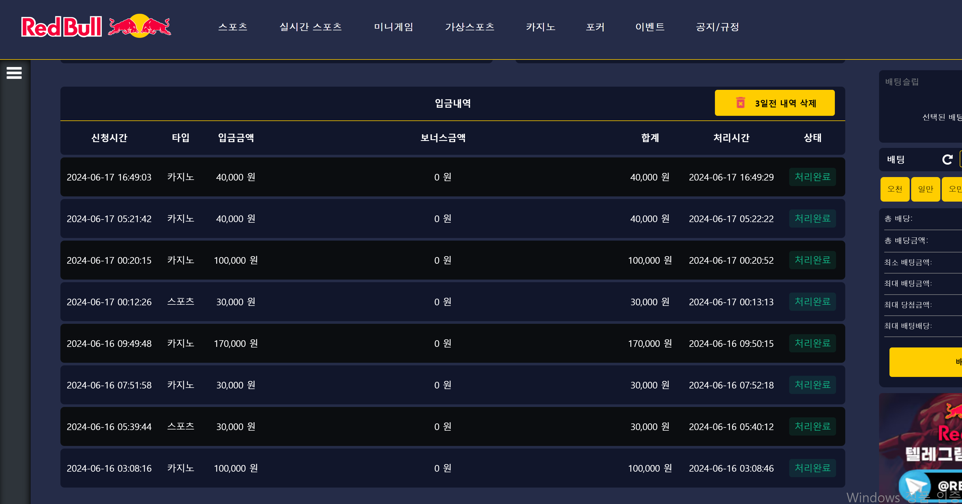 레드불 이용 후에 다른 사이트는 눈초리 조차 안줬습니다.