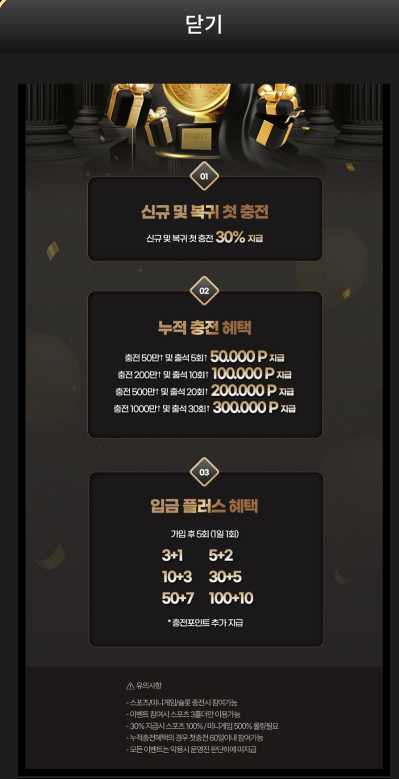안녕하세요 이끌림 후기 남겨봅니다 우선 사진과 같이 신규회원 입플 1일1회 총5회 받을 수 있구요 입플에 충전뽀너스까지 더해서 받아요! 정말 빠른충환 속도와 고센응대마저 친절하고 빠릅니다 꼭 이용해보셔요.